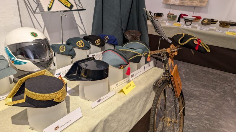 La exposición pertenece a Julio César Presencio, teniente en la reserva del Ejército de Tierra, y reúne más de 200 piezas especialmente gorros, boinas o cascos, de los diferentes cuerpos de las Fuerzas Armadas y la Guardia Civil.