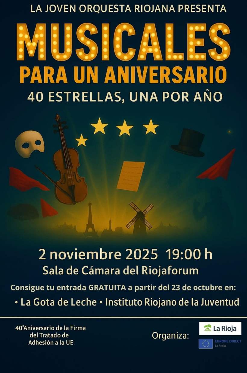 Este recital forma parte de un amplio programa de actividades impulsado por el Gobierno regional para conmemorar las cuatro décadas de la adhesión de España a las Comunidades Europeas. En total, se han organizado 11 propuestas, seis de ellas dirigidas específicamente a jóvenes, con el fin de reforzar el conocimiento y la vinculación de la ciudadanía riojana con el proyecto europeo.