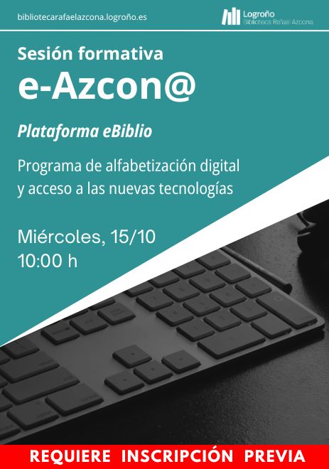 Tendrá lugar el miércoles 15 de octubre, de 10:00 a 12.00 horas, en la Biblioteca Rafael Azcona (c/Alcalde Emilio Francés, 34). Logroño.